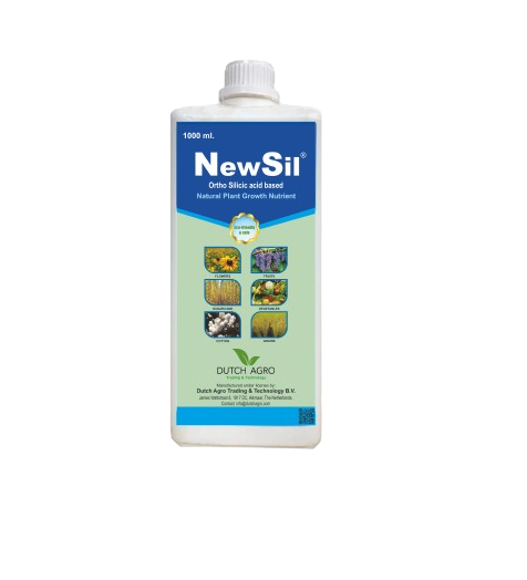 NewSil® reduces the water demand of the plant due to less transpiration.The bio-efficacy of NewSil® on a wide range of crops has been established by extended field trials by universities and by ‘farmers' hands in many countries. NewSil® is absolutely safe and eco-friendly with its nutrients approved by EFSA (European Food Safety Authority). NewSil® reduces the carbon footprint because it enhances the synthesis of chlorophyll in the leaves and biomass in total substantially. Consequently, more CO2 is taken up reducing the climate change problem.